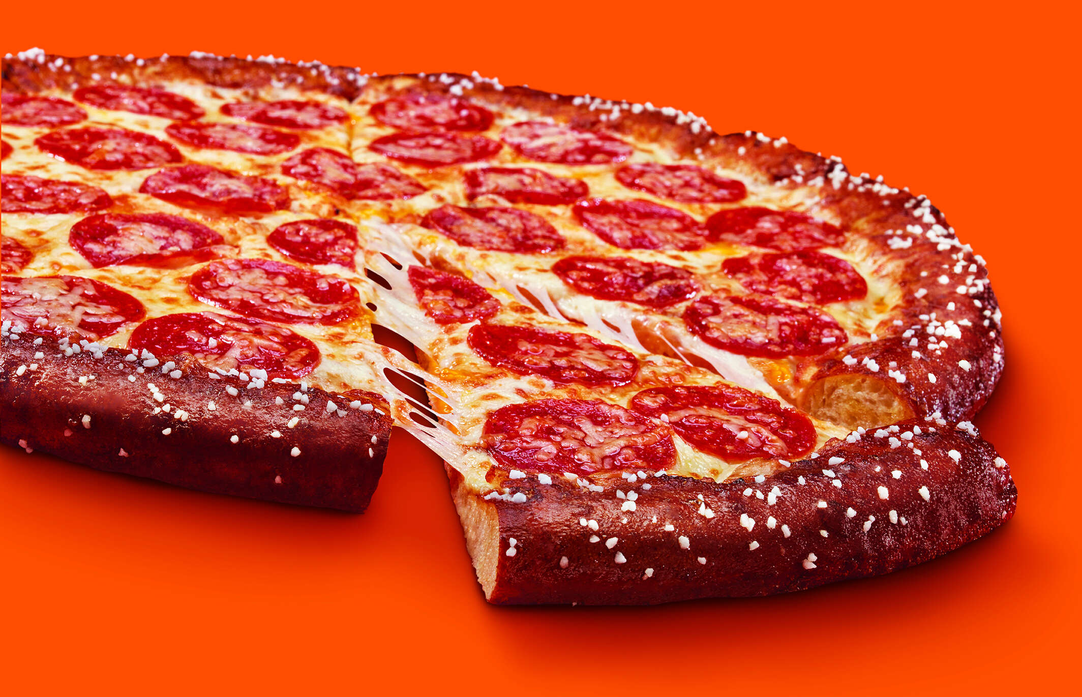 Over the years Little Caesars Pizza has had a number of promotional pizzas come and go but no other promotion has touched the marinara pumping hearts of the faithful pizza hogs more than the Soft Pretzel Crust Pizza. This is a overcharge if I ever saw one. Now top each pretzel crust with the cheese sauce one cup of mozzarella and 10-12 pepperonis.